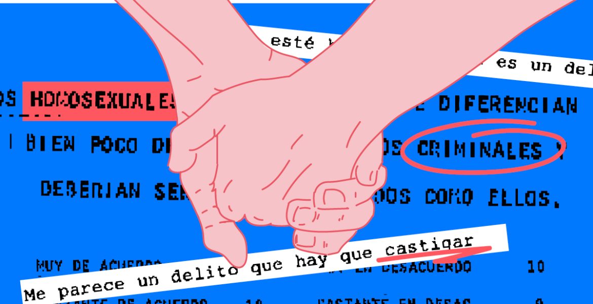 Entretanto, se sucederían las respuestas negativas sobre la homosexualidad también en las encuestas de los 80 y los 90, más el estigma del VIH, referida directamente como «el SIDA» en el CIS, que de nuevo colocaba la homosexualidad en el ojo del huracán mientras dejaba exentas de este problema a las relaciones heterosexuales. «En ese momento se le dio mucho bombo al tema más espiritual de ‘¿ves cómo dios castiga a esos viciosos?’ Aunque lo hemos quitado de enfermedad mental pero son viciosos, son malos, cuando el afectaba a todo el mundo que tuviera enfermedades sin protección», relata Armenteros.
